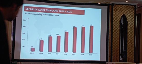 นางสาวฐาปนีย์ เกียรติไพบูลย์ ผู้ว่าการ ททท. กล่าวว่า "ความร่วมมือกับมิชลินตลอด 8 ปีที่ผ่านมาได้ช่วยยกระดับวงการอาหารไทยและการท่องเที่ยวเชิงอาหารอย่างเป็นรูปธรรม จากการเริ่มต้นแนะนำร้านอาหารในกรุงเทพมหานครเมื่อปี 2561 ซึ่งมีร้านอาหารในคู่มือ ‘มิชลิน ไกด์’ เพียง 98 ร้าน ปัจจุบันคู่มือเล่มล่าสุดปี 2568 มีจำนวนถึง 462 ร้าน ครอบคลุม 11 พื้นที่ทั่วทุกภูมิภาค และที่สำคัญในปี 2568 นี้ ร้านศรณ์ โดยเชฟไอซ์ ศุภักษร จงศิริ ได้รับสามดาวมิชลินเป็นร้านแรกในประเทศไทยและเป็นร้านอาหารไทยร้านแรกของโลก นับเป็นความภาคภูมิใจครั้งสำคัญของวงการอาหารไทย"