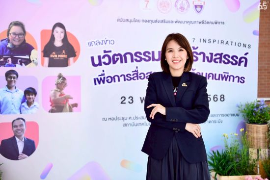 นางณฐอร อินทร์ดีศรี รองอธิบดีกรมส่งเสริมและพัฒนาคุณภาพชีวิตคนพิการ กระทรวงการพัฒนาสังคมและความมั่นคงของมนุษย์ กล่าวว่า กรมส่งเสริมและพัฒนาคุณภาพชีวิตคนพิการ มีความมุ่งมั่นในการส่งเสริมและพัฒนาคุณภาพชีวิตคนพิการในทุกด้าน ซึ่งในปัจจุบันนี้เรามีคนพิการที่จดทะเบียนประมาณ 220,000 คน กระจายอยู่ทั่วประเทศ การสร้างเจตคติเชิงบวกและการสื่อสารเพื่อสร้างความเข้าใจในสังคม สร้างมุมมองที่ดีให้คนพิการให้สามารถอยู่ในสังคมร่วมกับเราได้ ถือเป็นภารกิจที่สำคัญอย่างยิ่ง โครงการ ‘7 INSPIRATIONS (เฟส 3)’ นี้ เป็นเครื่องมือที่มีศักยภาพในการบรรลุเป้าหมายดังกล่าว โดยการนำเสนอเรื่องราวที่แท้จริงและสร้างแรงบันดาลใจจากผู้พิการโดยตรง และขอชื่นชมในวิสัยทัศน์และความตั้งใจของคณะทำงานของกองทุนส่งเสริมและพัฒนาคุณภาพชีวิตคนพิการร่วมกับทีมสจล. ที่ได้ริเริ่มและขับเคลื่อนโครงการนี้อย่างเต็มที่