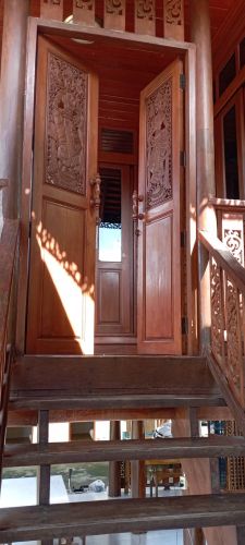 ที่พักสไตล์บ้านไทยที่ทันสมัย ยังคงความงดงามของสถาปัตยกรรมไทยไว้อย่างลงตัว ทุกหลังถูกออกแบบอย่างประณีต โดดเด่นด้วยลวดลายแกะสลักบนบานประตูและสัญลักษณ์ไทยที่ประดับบันไดและจั่วบ้าน ทำให้บรรยากาศอบอวลไปด้วยกลิ่นอายความเป็นไทยแท้ ผสมผสานกับความสะดวกสบายสมัยใหม่ได้อย่างพอดี