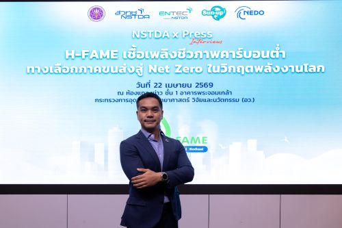 ซึ่งผู้สนใจสามารถเข้านิทรรศการผลงาน H-FAME ได้ที่งานประชุมวิชาการประจำปีสวทช. หรือ NAC2026 ได้ในวันที่ 24, 27-28 เม.ย. 69 เวลา 9:00 - 16:30 น. ณ อาคารศูนย์ประชุมอุทยานวิทยาศาสตร์ประเทศไทย จ.ปทุมธานี และผู้ประกอบการที่สนใจร่วมทดสอบใช้งานจริง หรือสนใจต่อยอดขยายปริมาณการผลิต H-FAME ในโครงการต่อเนื่องเพื่อขับเคลื่อนภาคขนส่งไทยสู่สังคมคาร์บอนตํ่า สามารถติดต่อได้ที่ ดร.พีรวัฒน์ สายสิริรัตน์ หัวหน้าโครงการและหัวหน้าทีมวิจัยพลังงานทดแทนและประสิทธิภาพพลังงาน กลุ่มวิจัยพลังงานคาร์บอนต่ำ ENTEC สวทช. E-mail: peerawat.sai@entec.or.th โทร. 02 564 6500 ต่อ 4747